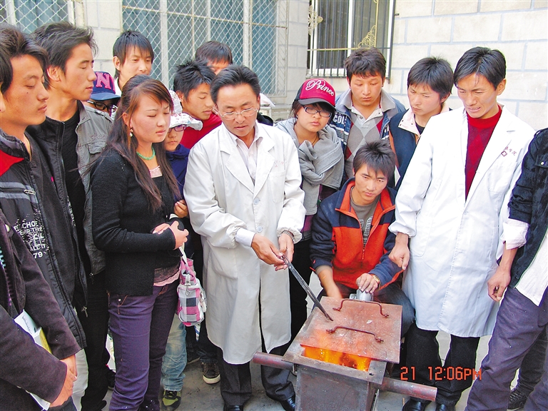 西藏藏醫(yī)藥大學(xué)開(kāi)展藏藥金屬炮制和鍛灰工藝現(xiàn)場(chǎng)教學(xué)。西藏藏醫(yī)藥大學(xué)提供