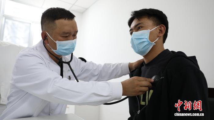 圖為張旭為患者檢查。西藏軍區(qū)供圖
