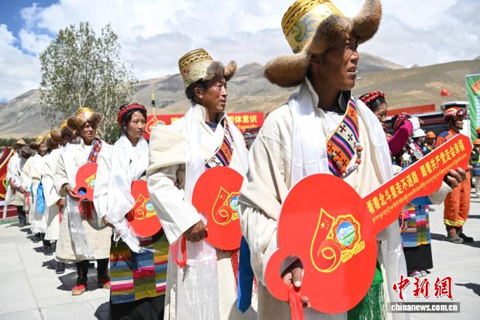 圖為西藏定日縣森嘎村首批民房入住儀式現(xiàn)場。貢嘎來松 攝