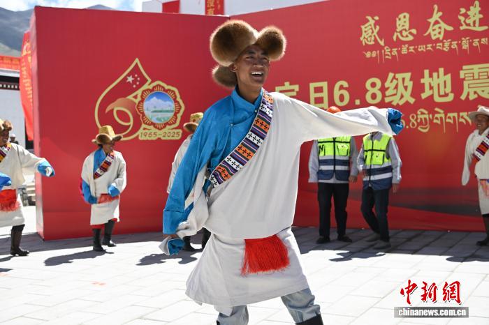 圖為西藏定日縣森嘎村村民載歌載舞慶祝喬遷之喜。貢嘎來松 攝
