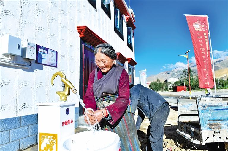 定日縣森嘎村首批入住村民在家門口用上了自來水。記者 王敏 攝