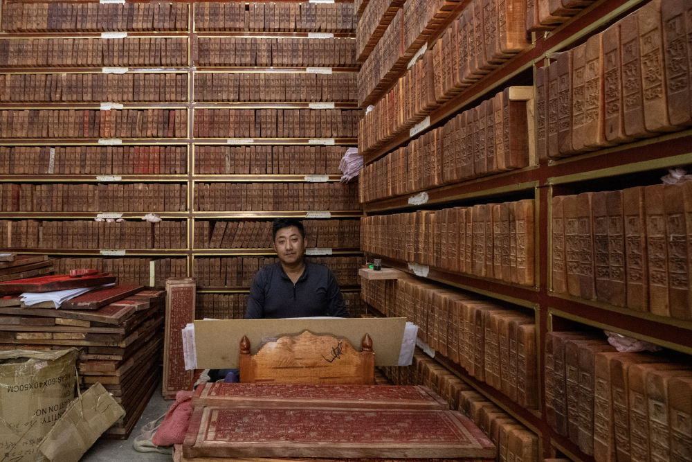 8月6日,一名雕刻師在雕刻中。西藏雪巴康雕版印刷制作技藝入選西藏自治區(qū)級(jí)非物質(zhì)文化遺產(chǎn)代表性項(xiàng)目名錄。