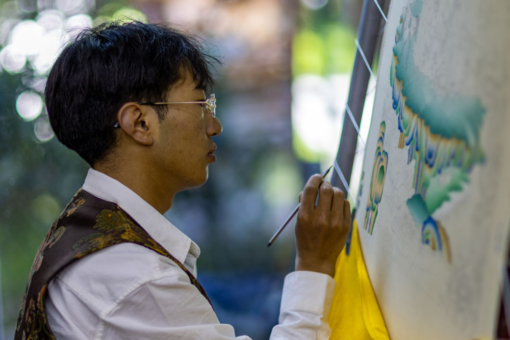 8月6日,一名畫(huà)師在繪制唐卡。藏族唐卡入選國(guó)家級(jí)非物質(zhì)文化遺產(chǎn)代表性項(xiàng)目名錄。