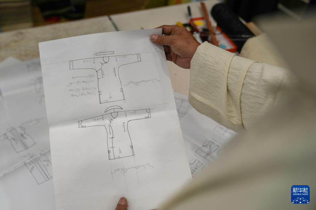洛桑麥朗手繪的藏裝制作要領(lǐng)(8月15日攝)。新華社記者 晉美多吉 攝