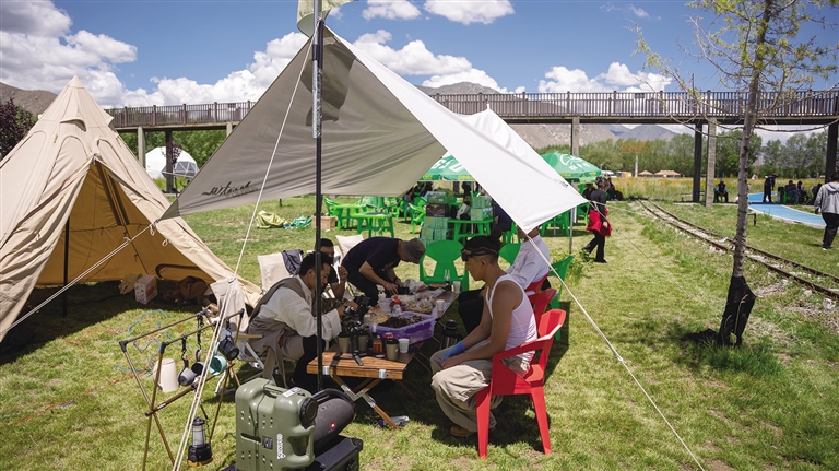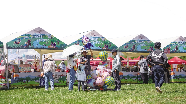 記者看到,綠野市集“沖賽康”充滿了煙火氣,30余家特色攤位齊聚林間。這里不僅有藏式甜茶、糌粑制品等傳統(tǒng)美食,讓游客大飽口福,還有氆氌文創(chuàng)、非遺手作等特色產(chǎn)品,滿足游客的購物需求。此外,互動游戲與民俗體驗(yàn)也吸引了眾多游客參與,營造出充滿活力的林卡生活場景。