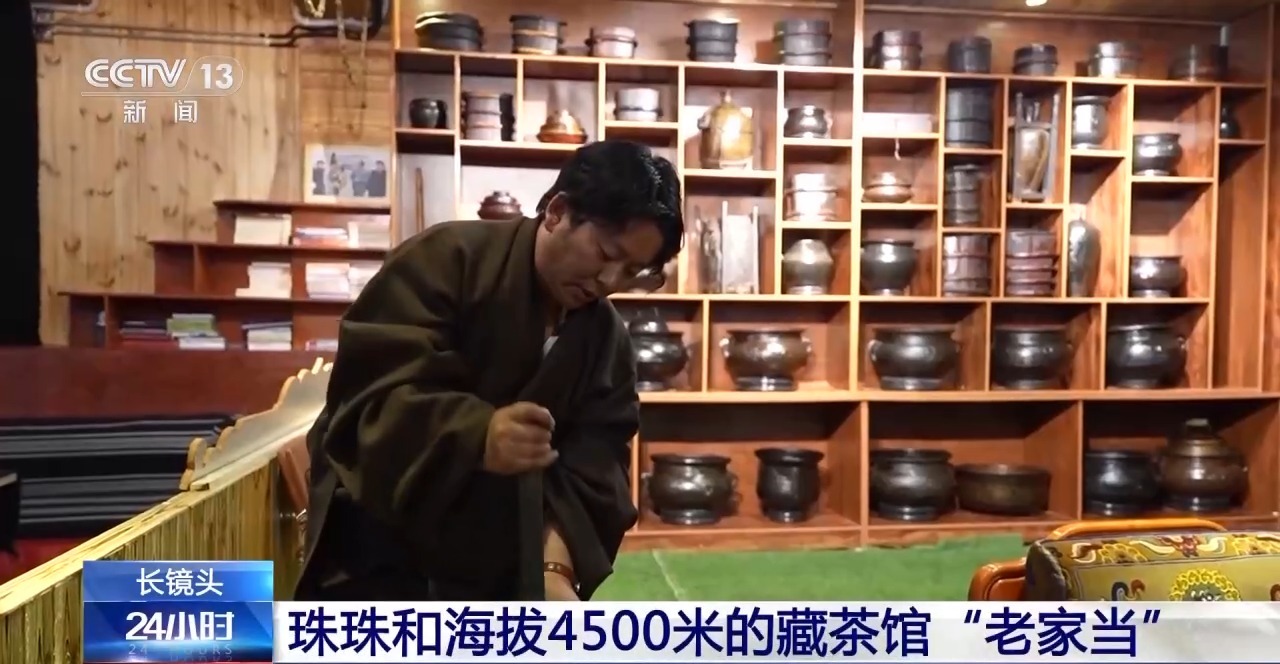 在帶記者欣賞民俗物品、觸摸歷史的同時(shí),珠珠也邀請(qǐng)記者像藏族同胞一樣,喝上一杯熱騰騰的酥油茶。