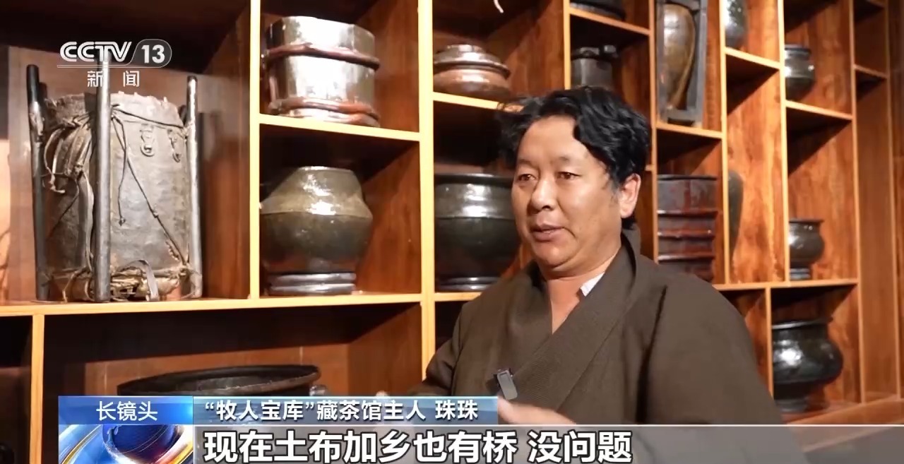 “牧人寶庫(kù)”藏茶館主人 珠珠:現(xiàn)在在黨的恩情下,所有事情都變得便捷。以前沒水的地方有了水、沒電的地方通了電、沒路的地方有了路,我有信心會(huì)變得越來越好。