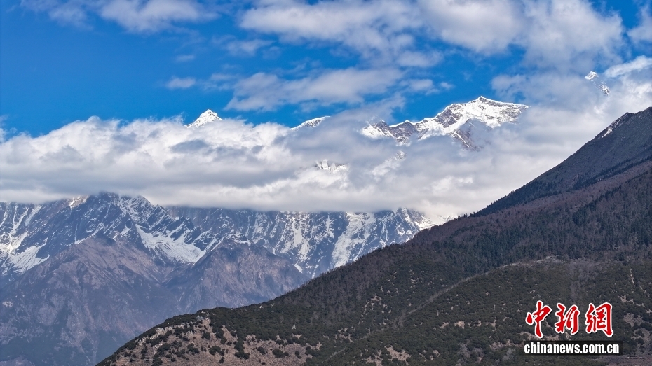 航拍位于西藏自治區(qū)林芝市境內(nèi)的南迦巴瓦峰。雅魯藏布大峽谷全長504.6公里,最深處6009米,被認(rèn)為是世界上長度最長、深度最深的大峽谷。(無人機(jī)照片)中新社記者 馬銘言 攝