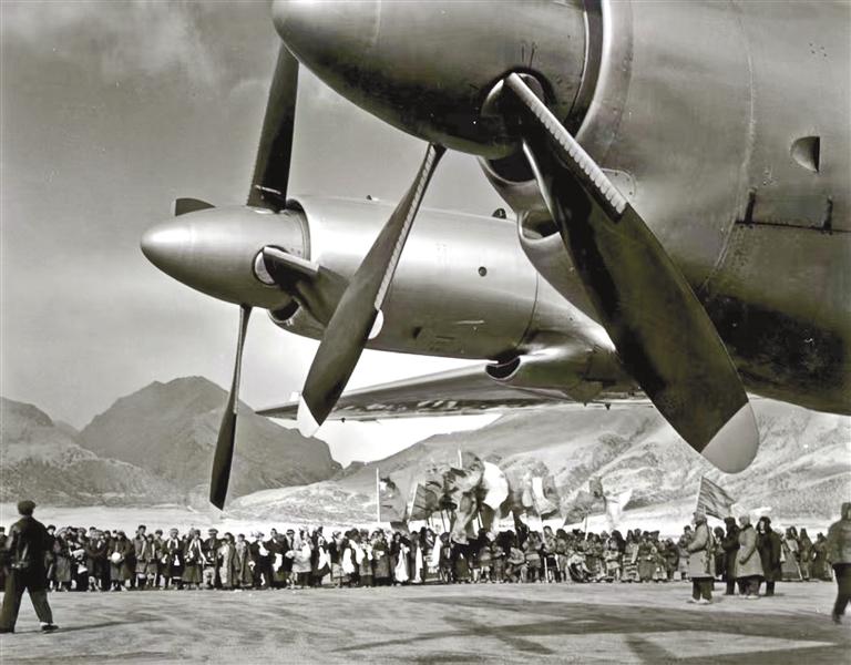 無畏開拓,筑起雪域天路。1955年底,黨中央、國務(wù)院作出開辟北京至拉薩民用航線的重要指示。1956年4月26日,當(dāng)雄草原上建起了簡易跑道;5月26日,韓琳機(jī)組駕駛伊爾-12型飛機(jī)從北線試航,穿破層層云障,成功降落在雪山環(huán)抱的當(dāng)雄機(jī)場,填補(bǔ)了我國高高原飛行的空白;9月5日,歷時118天,西藏第一座機(jī)場——當(dāng)雄機(jī)場建成。此后的10年間,多次組織試飛。1965年3月1日,民航第一飛行大隊孫權(quán)貴和畢春芳機(jī)組駕駛伊爾-18型飛機(jī)從北京起飛,次日平穩(wěn)降落當(dāng)雄機(jī)場,北京-成都-拉薩航線正式通航,西藏民航波瀾壯闊的發(fā)展篇章就此開啟。