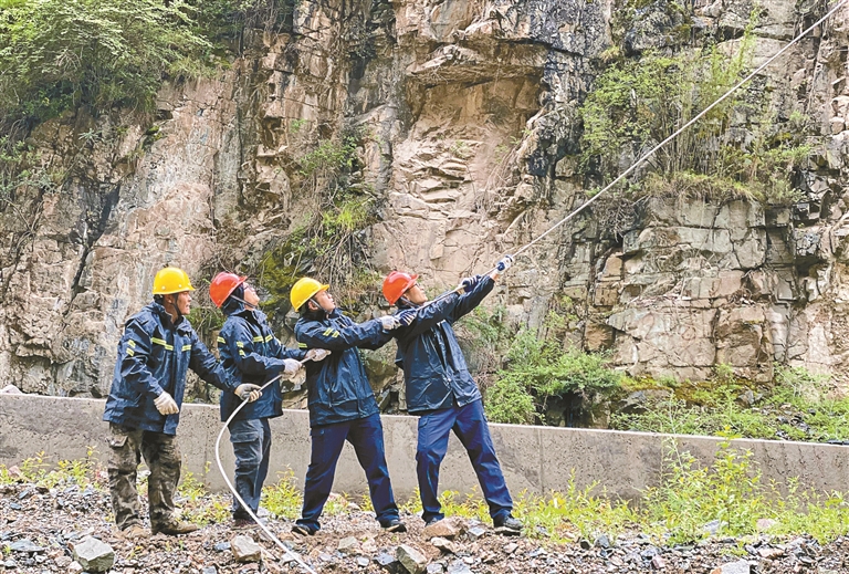 西藏開(kāi)投金橋水電站黨員突擊隊(duì)緊急修復(fù)廠壩線,力保防洪度汛安全。
