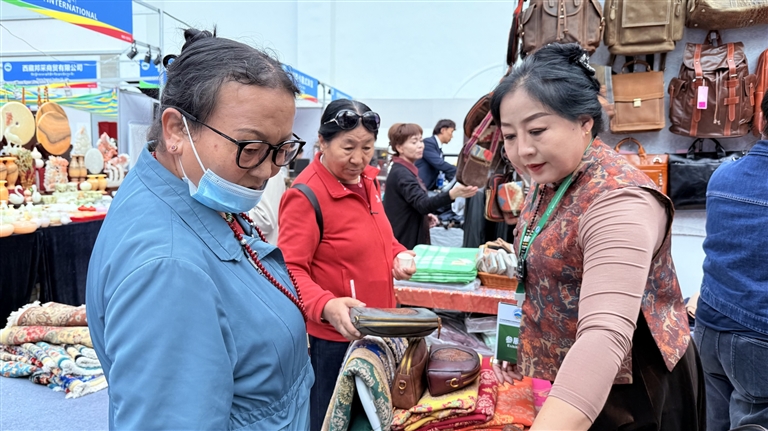展會(huì)現(xiàn)場(chǎng)人頭攢動(dòng),熱鬧非凡。150家參展商帶來(lái)的特色產(chǎn)品鋪滿了各個(gè)展位,空氣中彌漫著多元?dú)庀ⅰ7▏?guó)紅酒的醇厚酒香、印度尼西亞咖啡的濃郁焦香、伊朗藏紅花的獨(dú)特芬芳交織在一起,與西藏本土青稞制品的麥香、高原蜂蜜的甜香相互映襯。在巴基斯坦展位前,參展商Asif正熱情地向顧客展示手工羊毛地毯,“我已經(jīng)連續(xù)三年參加,之前銷量都很好,這次帶來(lái)的地毯紋樣融入了藏式元素,希望能更受歡迎。”