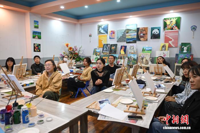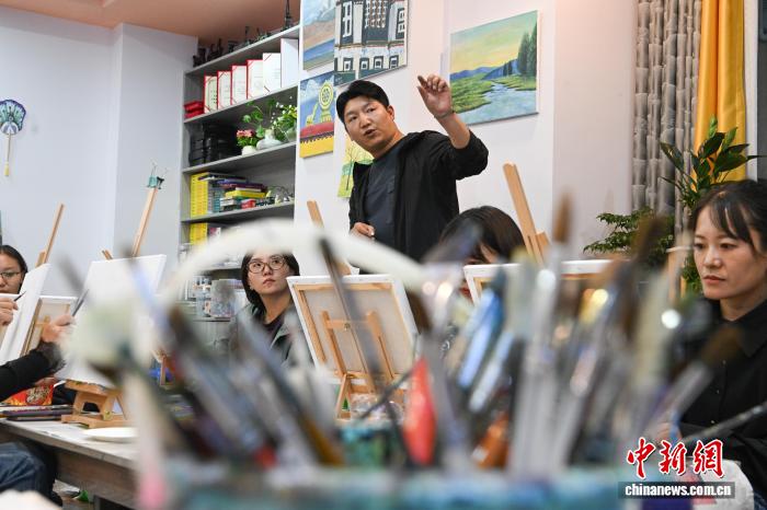 9月1日,2025年西藏自治區(qū)拉薩市第二期“青年夜?!闭介_班。圖為夜校學(xué)員在上美術(shù)課。中新社記者 貢嘎來松 攝