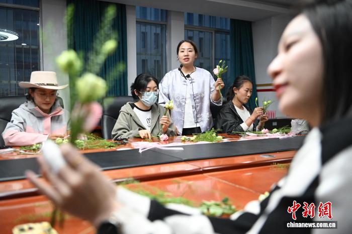 9月1日,2025年西藏自治區(qū)拉薩市第二期“青年夜?!闭介_班。圖為夜校學(xué)員在上花藝課。中新社記者 貢嘎來松 攝
