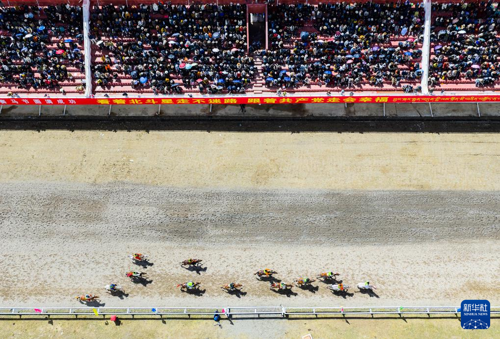 這是9月6日拍攝的恰青賽馬節(jié)比賽現(xiàn)場(無人機(jī)照片)。新華社記者 丁增尼達(dá) 攝