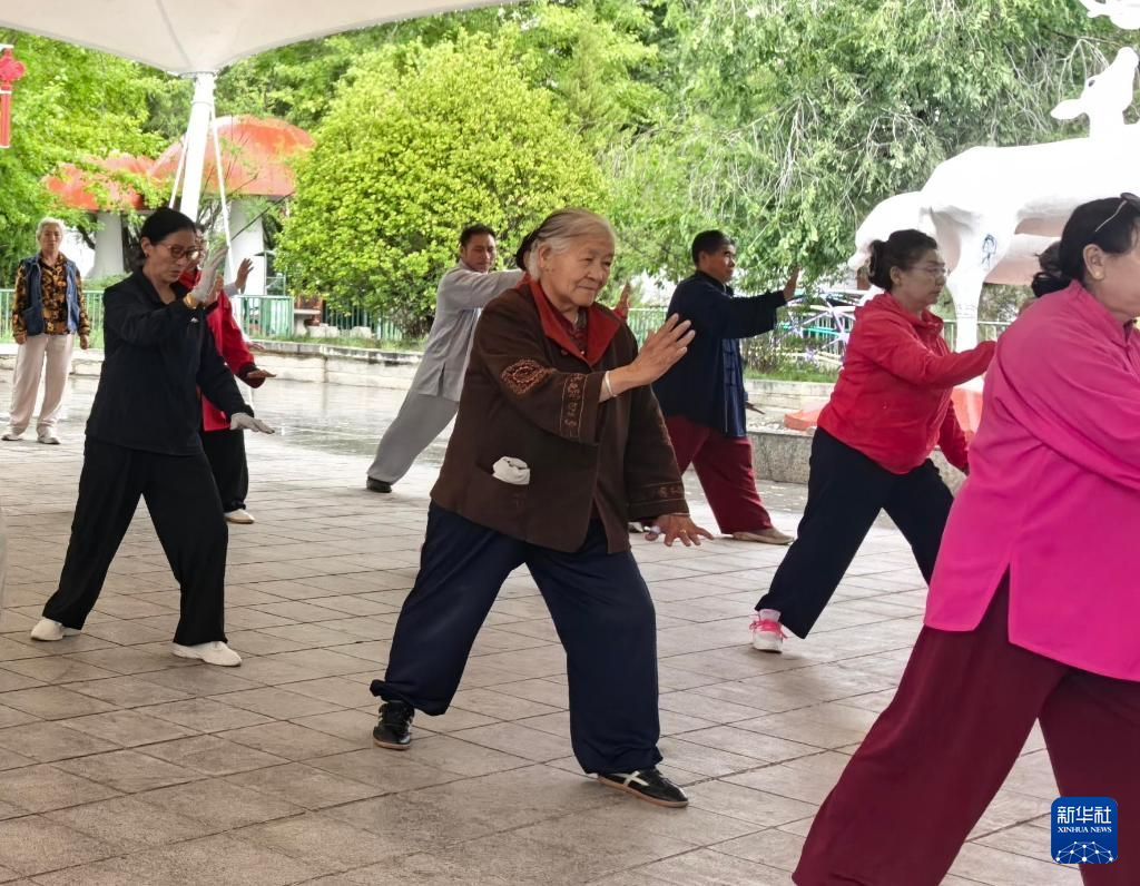 81歲的頓多和拳友們打著太極拳