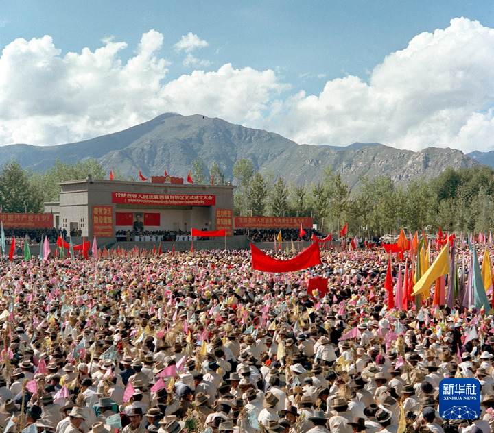 1965年9月,拉薩各界人民集會(huì),慶祝西藏自治區(qū)成立。新華社記者 袁克忠 攝