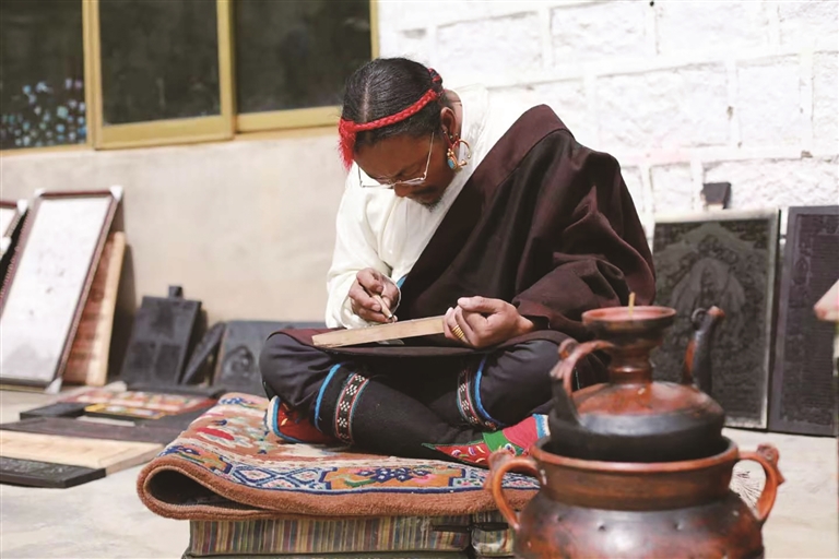 在傳承技藝的過程中,斯曲也面臨著不少挑戰(zhàn)。教徒弟時最大的困難就是讓他們靜下心來,因為這門手藝需要從小學(xué)起,不僅要學(xué)習(xí)拿工具,還要學(xué)習(xí)認(rèn)字和雕刻?!耙郧肮馐菍W(xué)習(xí)雕刻文字,起碼要9個月時間,現(xiàn)在的孩子都很聰明,兩年基本就能掌握雕刻技藝。”斯曲欣慰地說。