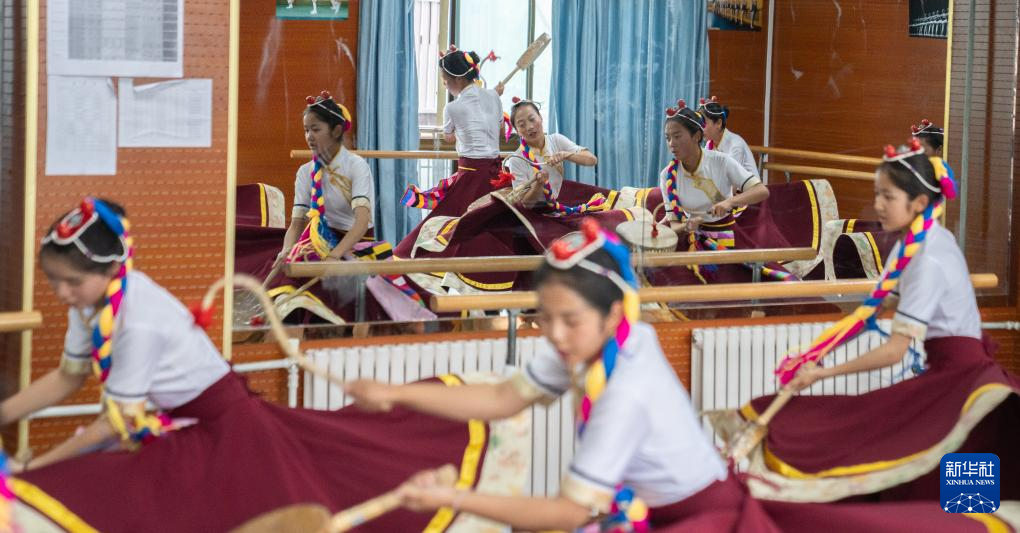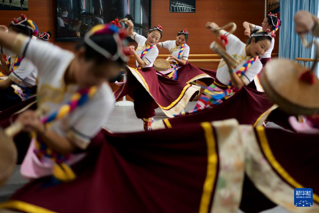 9月9日,在拉薩市第二中等職業(yè)技術(shù)學(xué)校,孩子們在練習(xí)熱巴舞。新華社記者 晉美多吉 攝