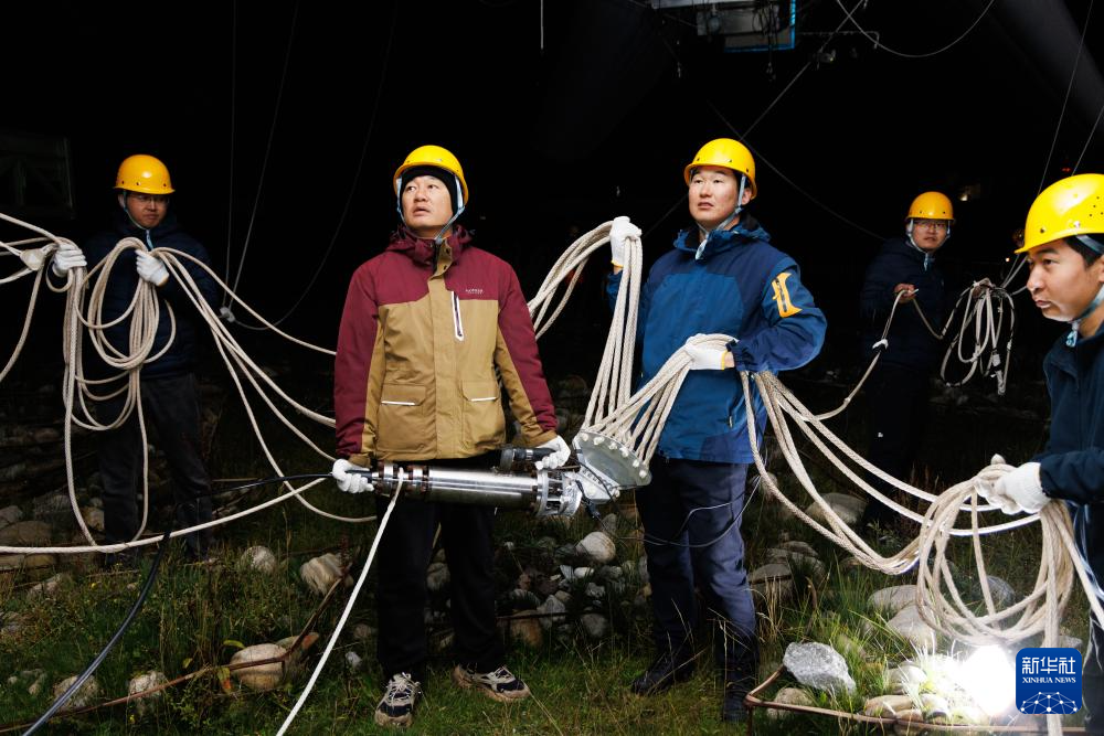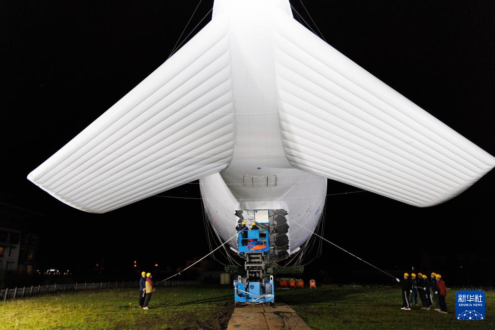 9月18日,“極目一號(hào)”浮空艇大氣觀測試驗(yàn)現(xiàn)場,科研人員在操作鼻系索。新華社記者 金立旺 攝