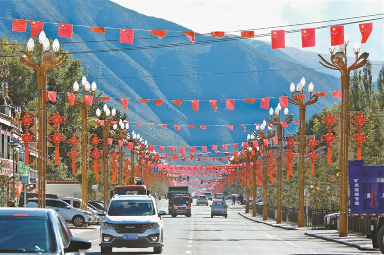 圖為墨竹工卡縣裝飾一新的街道。通訊員 洛克 記者 唐斌 攝