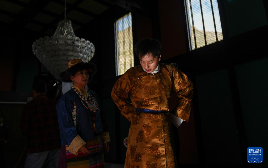 班珠丹塔身著藏裝進(jìn)行棚拍(9月9日攝)。新華社記者 丁增尼達(dá) 攝??