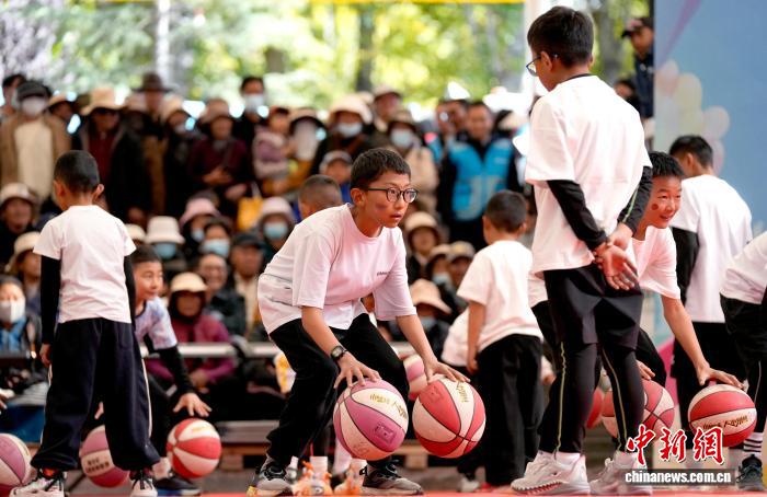 圖為西藏青少年校外實(shí)踐教育成果匯報(bào)展上的籃球技能展示。李林 攝