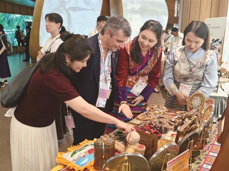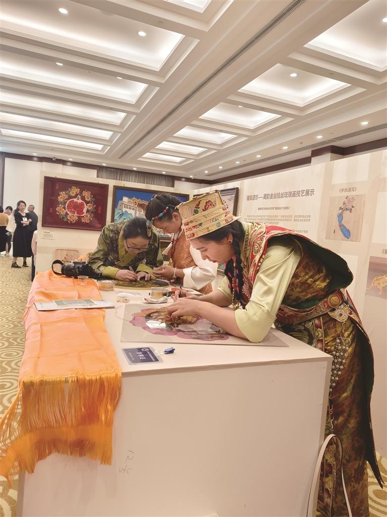 林芝市職業(yè)技術(shù)學(xué)校“藏韻金絲掐絲琺瑯畫”應(yīng)邀參加職業(yè)教育優(yōu)秀非遺教學(xué)成果展。本版圖由林芝市職業(yè)技術(shù)學(xué)校提供