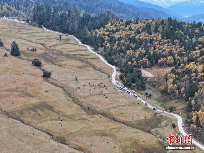 10月28日,魯朗高山牧場(chǎng)(無人機(jī)航拍)。貢嘎來松 攝