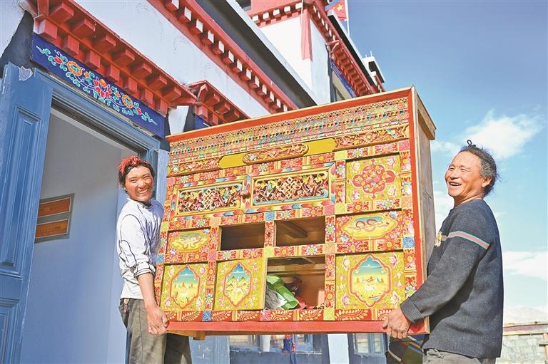 圖為定日縣措果鄉(xiāng)野江村村民往新房里搬家具(資料圖片)。記者 平措次仁 攝