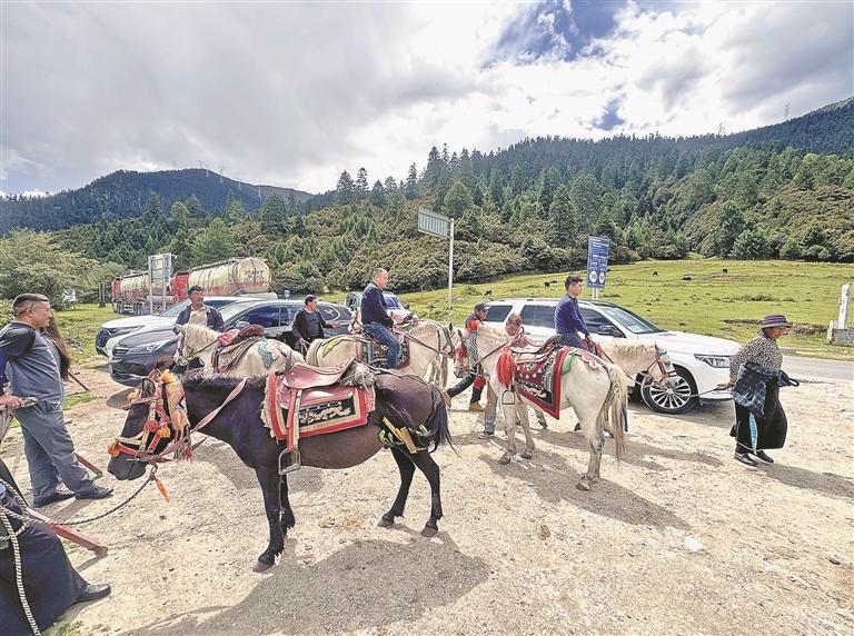 林芝市魯朗景區(qū)內(nèi),游客在體驗(yàn)當(dāng)?shù)靥厣T馬項(xiàng)目。 記者 白瑪澤旺 攝