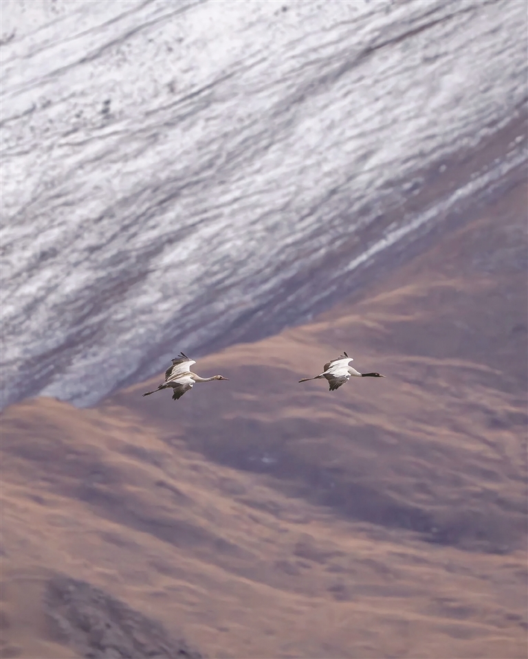 最初巡護(hù)時,沒有先進(jìn)設(shè)備,全靠雙腳丈量、雙眼巡查,餓了啃干糧,冷了裹藏袍。如今保護(hù)力度加大,黑頸鶴數(shù)量逐年增長,越來越多村民也加入守護(hù)行列,沒人再驚擾這些“高原貴客”?!昂陬i鶴是吉祥象征,保護(hù)它們就是保護(hù)家園。”55歲的頓珠次仁鬢角染霜,卻如他守護(hù)的老鶴般,初心未改。對他而言,黑頸鶴是“從小熟悉的老朋友”,林周既是自己的家,也是鶴群的家。這份守護(hù),早已超越職責(zé),成為人與自然和諧共生的生動注腳。