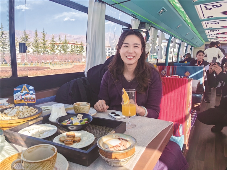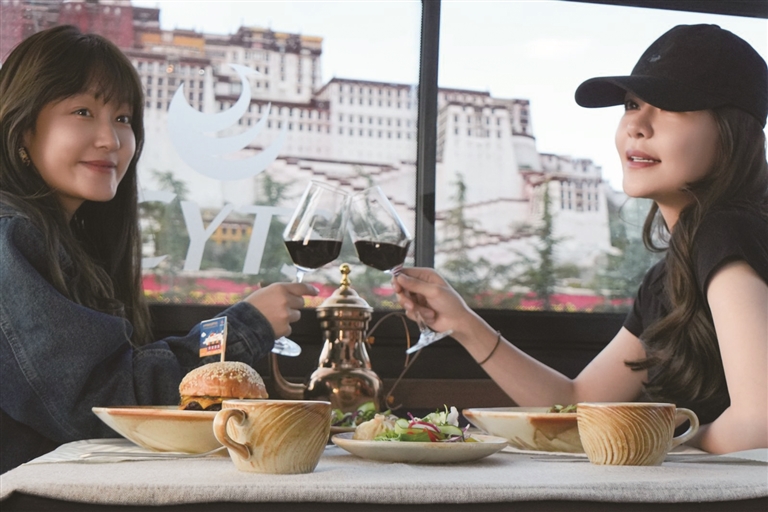 為了讓游客和市民能夠品嘗到最地道的拉薩美食,觀光巴士運(yùn)營(yíng)方與拉薩多家知名餐廳展開了深度合作。乘車期間,游客可以圍爐煮茶,感受那份溫馨與愜意,品嘗果茶的清甜、干果的香脆與甜品的綿密交織在口中的美妙滋味;還可以喝上一杯用高原牦牛奶與醇厚紅茶小火慢熬而成的甜茶,搭配上融合藏式元素的精致茶點(diǎn),仿佛瞬間穿越到了拉薩當(dāng)?shù)厝说纳钪?,沉浸式體驗(yàn)他們的悠閑午后時(shí)光。