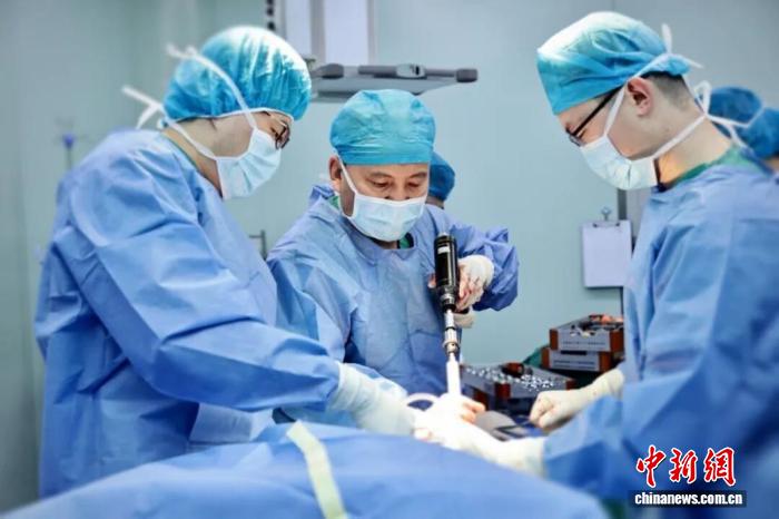 青島醫(yī)療團隊在手術(shù)中。(青島市市立醫(yī)院供圖)
