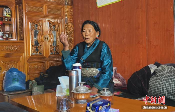 圖為定日縣長所鄉(xiāng)森嘎村村民講述搬進新家后的美好生活。貢桑拉姆 攝