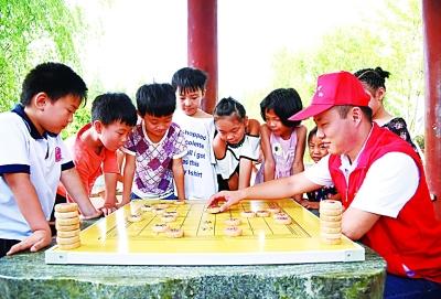 河北省河間市團(tuán)市委組織青年志愿者開展“微愛接力”農(nóng)村留守兒童志愿幫扶公益活動(dòng)。新華社發(fā)