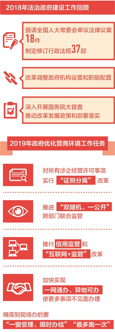 習近平總書記在黨的十九大報告中指出,要建設(shè)法治政府,推進依法行政,嚴格規(guī)范公正文明執(zhí)法。政府工作報告中,許多法治關(guān)鍵詞折射出法治政府建設(shè)的堅實步伐。代表委員們認為,依法行政、加強公正監(jiān)管、創(chuàng)新社會治理,為營造良好經(jīng)濟社會環(huán)境提供有力保障。