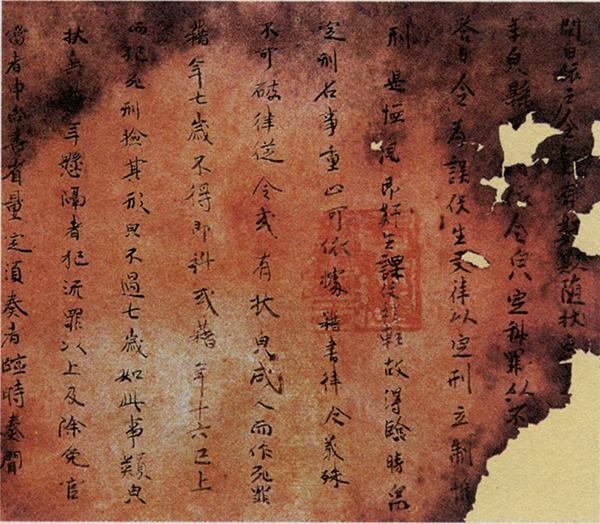 唐律在中國(guó)法制史上居于承前啟后的重要地位,以“得古今之平”著稱于世?!短坡墒枳h》在《貞觀律》基礎(chǔ)上修訂而成,為大唐盛世奠定了法律基石,充分體現(xiàn)了中國(guó)古代法律制度的水平、風(fēng)格和基本特征,成為中華法系的代表性法典之一。圖為《唐律疏議》殘片(局部)。