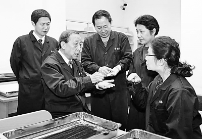 李學勤(左二)研究團隊正在研究清華簡。資料圖片
