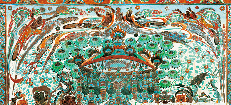 敦煌是古代中國認識世界的前沿,也是當(dāng)時世界了解中國的窗口之一。在這里,來自印度、希臘、波斯等國家和中亞地區(qū)的文化,與中國文化平等對話,在交流融合中不斷創(chuàng)新、不斷進步,使其成為中西文明交往的樣板。圖為敦煌莫高窟第320窟的壁畫。 敦煌研究院供圖