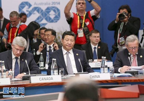 2014年11月15日,國家主席習(xí)近平出席在澳大利亞布里斯班舉行的二十國集團(tuán)領(lǐng)導(dǎo)人第九次峰會,并在第一階段會議上作了題為《推動創(chuàng)新發(fā)展 實現(xiàn)聯(lián)動增長》的重要發(fā)言。
