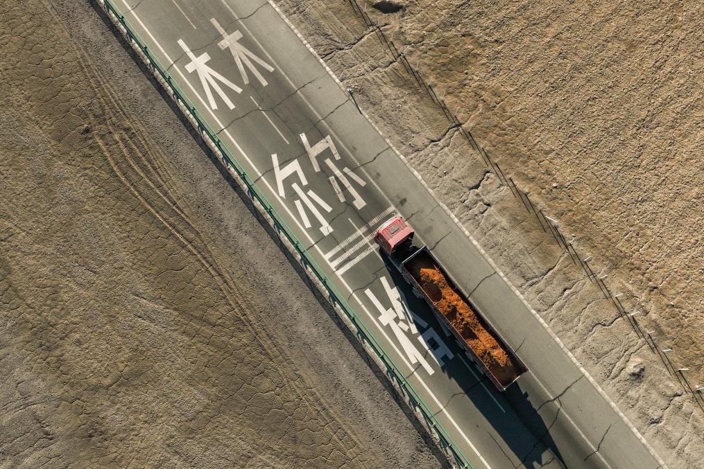 “經(jīng)過改建,如今的鹽橋已經(jīng)與普通柏油路沒有區(qū)別。”青海省公路局格爾木公路段段長賈國平拿著石碑下方干裂翹起的一片鹽蓋說,路的最下方就是它。這條路從上到下依次是鋪筑的瀝青混凝土面層、水泥穩(wěn)定基層、砂礫層和天然鹽蓋。鹽蓋下方就是深達(dá)10至20米的結(jié)晶鹽和晶間鹵水,公路實(shí)際上就像一座橋浮在鹵水上,就此形成了“車在鹽上走,水在鹽下流”的奇觀。