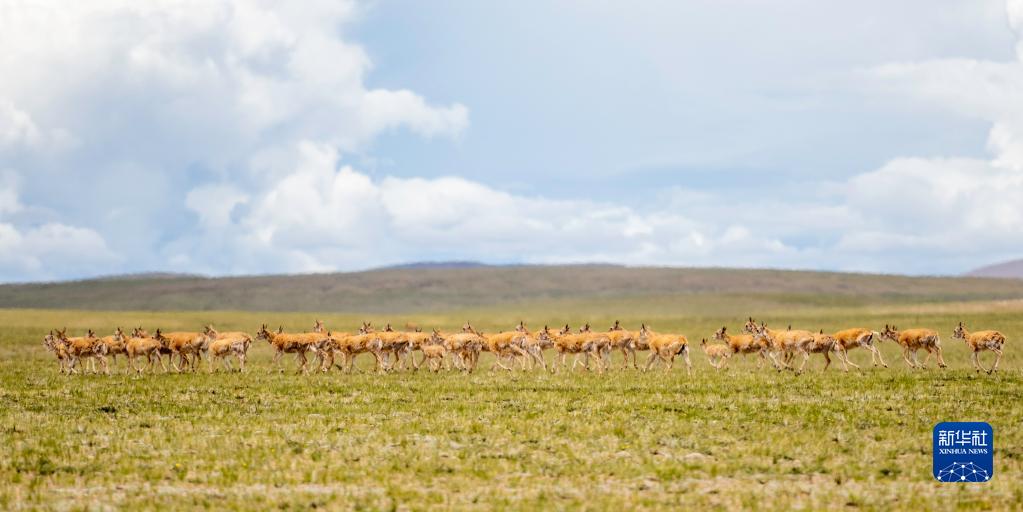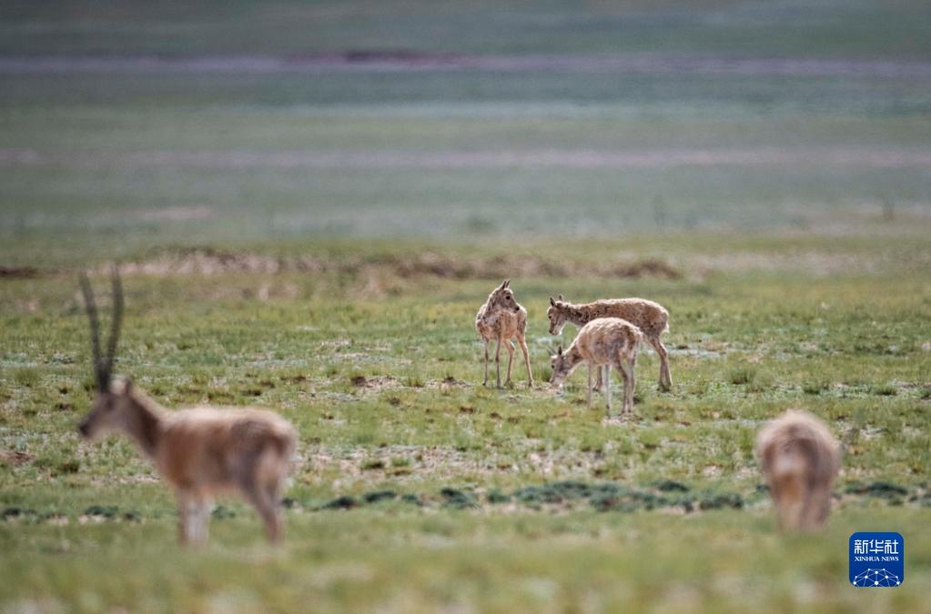 這是在羌塘國家級(jí)自然保護(hù)區(qū)內(nèi)拍攝的藏羚羊(7月11日攝)。新華社記者 周荻瀟 攝