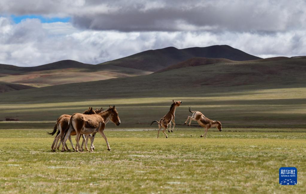 在雙湖縣境內(nèi)拍攝的藏野驢(7月16日攝)。新華社記者 晉美多吉 攝
