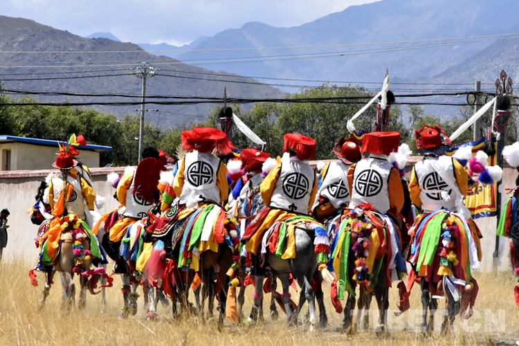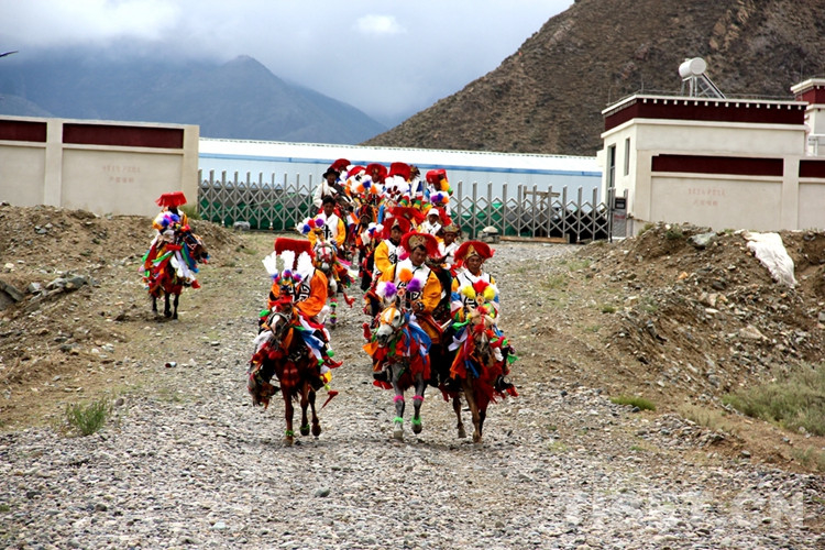 “望果節(jié)”從遠(yuǎn)古走來(lái),是西藏人民敬畏自然、禮贊生命、寄托祝福的節(jié)日?!袄怠蓖猓T手們和村里德高望重的老人們正在吟唱古老的民歌,祈求風(fēng)調(diào)雨順、莊稼豐收。一聲“杰杰嗦嗦,拉嗦啰”后,糌粑粉被高高拋撒,騎手們即將出發(fā)。