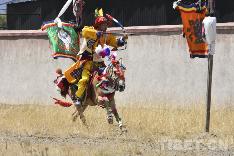 伴隨著一聲令下,騎手們駕著馬匹風(fēng)馳電掣般在賽道上飛奔,有的一邊騎馬一邊拉弓搭箭,準(zhǔn)確地射中箭靶;有的在騎馬過(guò)程中展示俯身?yè)煳锏忍丶紕?dòng)作,引來(lái)陣陣喝彩聲。賽馬結(jié)束,一條條潔白的哈達(dá)、一杯杯青稞酒,獻(xiàn)給英勇的騎手,表達(dá)村民真誠(chéng)的禮贊與祝福。(中國(guó)西藏網(wǎng) 記者/拉姆 實(shí)習(xí)生德吉卓嘎)