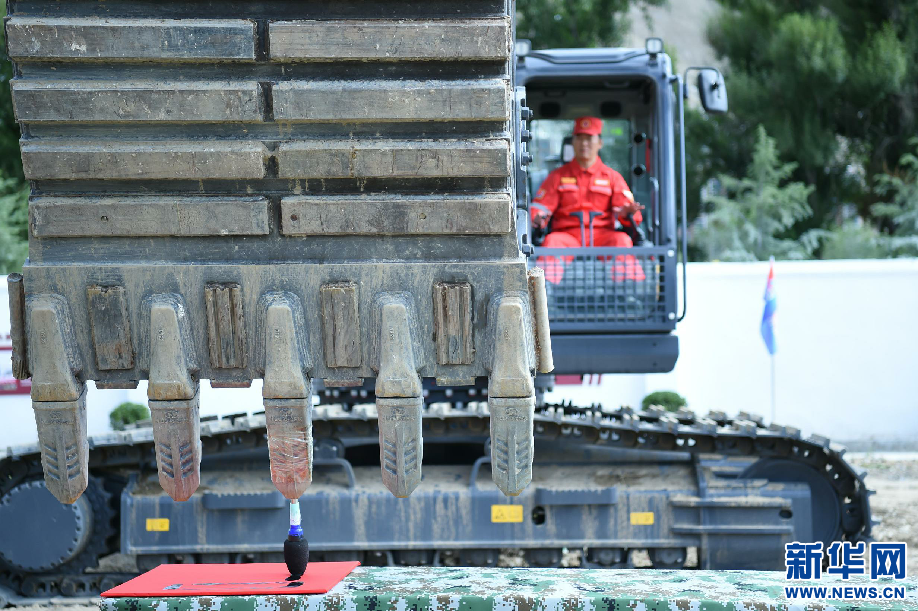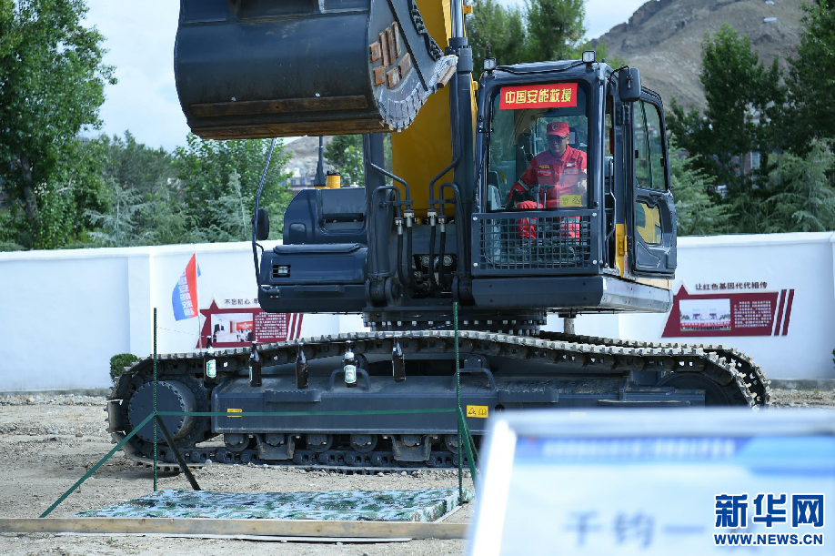 8月5日,工作人員在拉薩基地演示應(yīng)急搶險(xiǎn)動(dòng)態(tài)精準(zhǔn)科目—“挖掘機(jī)寫(xiě)字”。新華網(wǎng) 旦增努布 攝