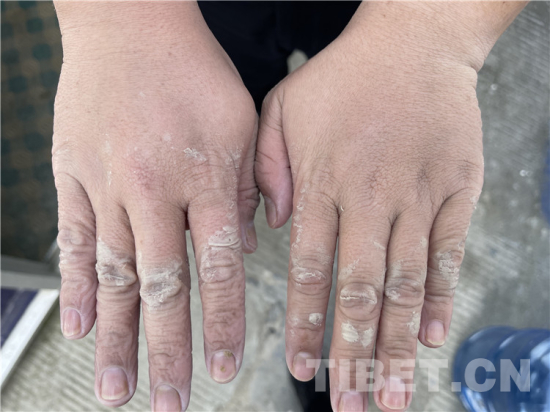 摘下戴了十幾個(gè)小時(shí)的手套,每根手指都被捂皺變形,關(guān)節(jié)處的皮膚泛白腫脹——看到日喀則邊境管理支隊(duì)吉隆邊境派出所民警桂浩的手部照片,讓人不禁淚目?! ?/p>