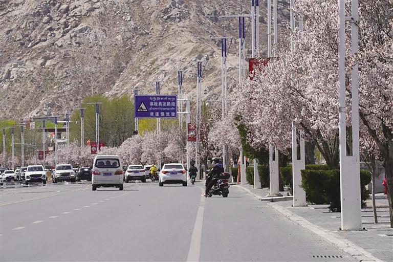 那么,去哪里查收這份“春日限定大禮包”呢?最近幾天,記者的朋友圈都被帕崩崗的美景霸屏了,一波又一波的朋友到這里打卡。除了去帕崩崗賞桃花,更不容錯(cuò)過(guò)的一定是拉薩大街小巷以及公園中驚鴻一瞥的美景。宗角祿康公園植被繁茂、古樹(shù)較多,一到春季,玫粉色的榆葉梅綻放枝頭,層層花瓣在陽(yáng)光的照耀下嬌俏動(dòng)人,一樹(shù)粉色花朵倒映在幽綠的湖水中,盡顯詩(shī)意。此外,緊鄰羅布林卡的羅堆東路也有意想不到的美景,每到這個(gè)季節(jié),紅葉李便會(huì)沿路盛開(kāi),淡粉色的花瓣搭配深紅色的花蕊,甚是好看。金珠西路沿途的景色也令人耳目一新,淡粉色的花朵肆意綻放,等紅燈時(shí)的心情因這些花朵變得不再焦灼。
