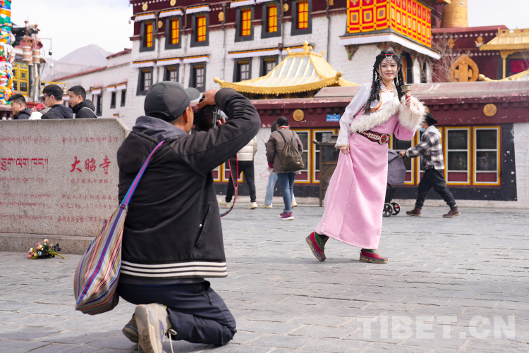 圖為2023年2月“冬游西藏”活動期間在大昭寺廣場前打卡的游客 攝影:趙振宇