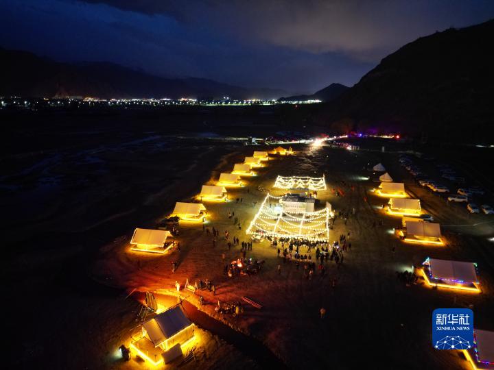 “這里依山傍水,活動(dòng)既有傳統(tǒng)特色,又融入現(xiàn)在流行的露營元素,我覺得很時(shí)尚、很享受,下次還要這樣過林卡!”游客洛桑興奮地說。另一邊,來自四川的范莎正與眾多好友圍坐在篝火邊暢談:“第一次這樣過林卡,沒想到會(huì)這么精彩,大家都很熱情,溫馨的場(chǎng)景令人沉醉。”夜色朦朧,供游客拍照“打卡”的秋千吸引了洛珠桑布一家的注意,孩子們嬉戲玩耍,大人們拍照留念,好不熱鬧。“只要孩子們玩得開心就好,平常太忙,今天是陪他們的好機(jī)會(huì)?!甭逯樯2夹χf。